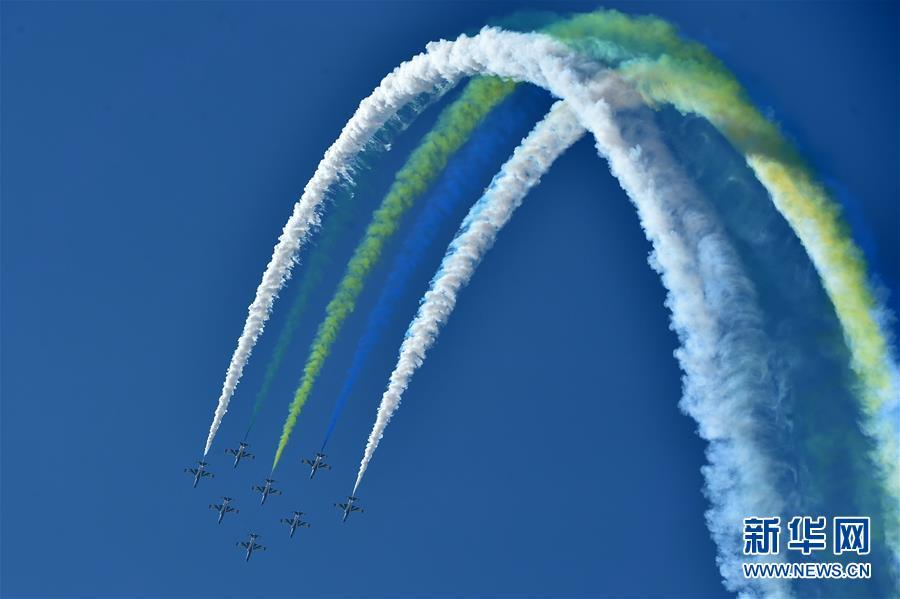 11月6日,空軍航空大學(xué)“紅鷹”飛行表演隊在航展現(xiàn)場進行飛行表演。當(dāng)日,第十二屆中國國際航空航天博覽會在珠海開幕。新華社記者梁旭攝