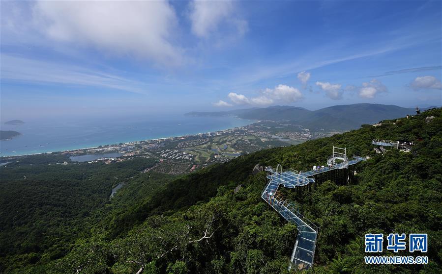 8月31日,游客在玻璃棧道上參觀游覽。近日,位于海南省三亞市亞龍灣熱帶天堂森林公園的大佛石全海景玻璃棧道開(kāi)始正式營(yíng)業(yè)。凌空而建的玻璃棧道全長(zhǎng)400米,游客可將亞龍灣的美景盡收眼底。新華社記者郭程攝