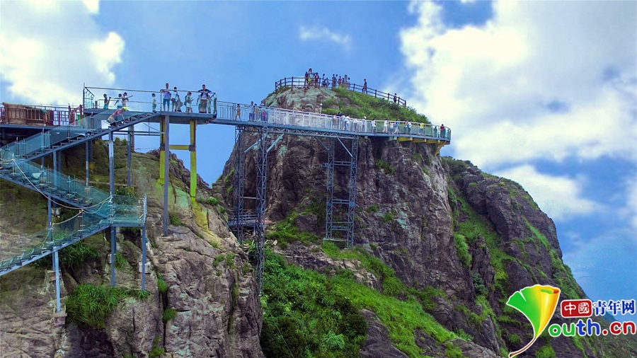 金子山素以天梯而著名,原來的通天天梯是用石頭建成的。而最高峰的天梯則用玻璃建成的,是國內(nèi)首個玻璃天梯,也是全國首個樓梯型的玻璃旅游產(chǎn)品。