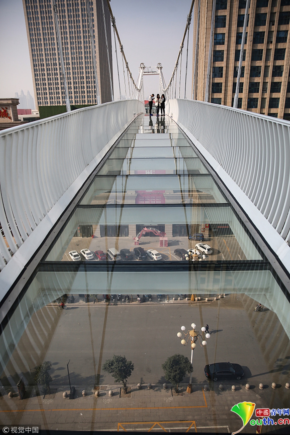 石家莊市區(qū)玻璃橋走紅 踩上去有破裂特效聲