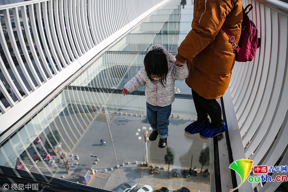 石家莊市區(qū)玻璃橋走紅 踩上去有破裂特效聲