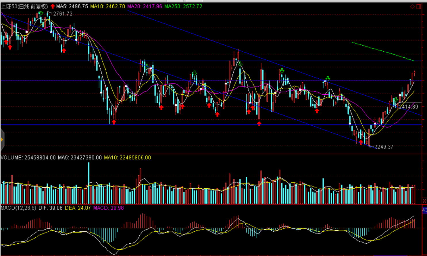 技術(shù)面:延續(xù)震蕩上行趨勢(shì),上證50短期2570點(diǎn)一線、滬綜指2700點(diǎn)、1350點(diǎn)一線震蕩或?qū)⒓觿 ?/p>