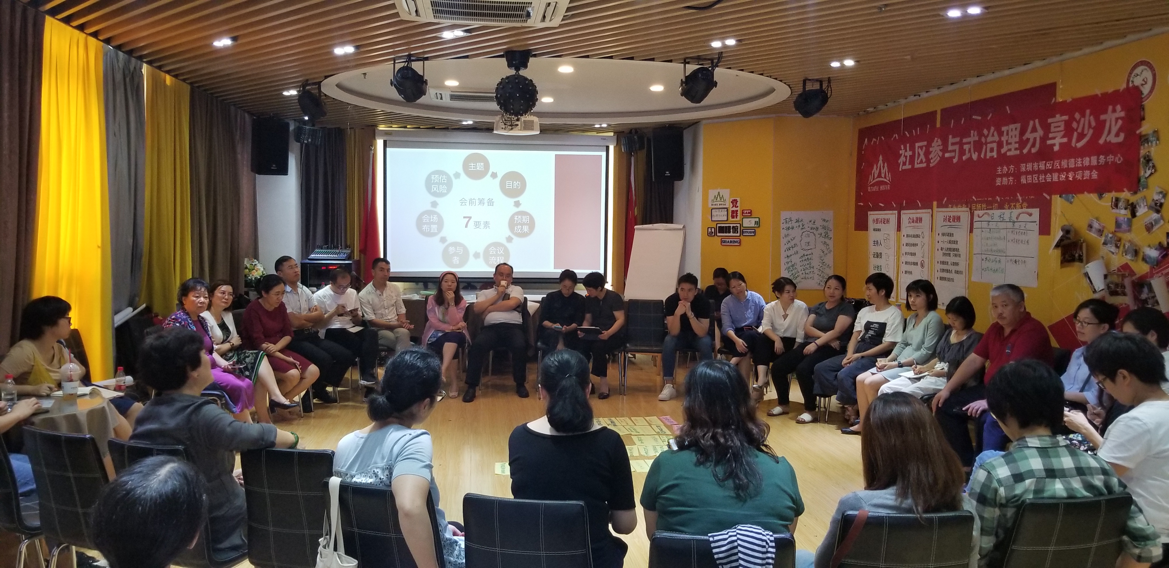 5月15-16日,由“福田區(qū)社會建設(shè)專項資金”資助的社區(qū)議事能力建設(shè)項目在福田區(qū)福田街道“白領(lǐng)e家”開展,來自福田區(qū)各個社區(qū)的人民調(diào)解員、社區(qū)法律顧問、社會工作者以及深圳市福田區(qū)維德法律服務(wù)中心邀請的志愿律師等80余人次參與了本次“社區(qū)參與式治理分享沙龍”。福田區(qū)街道黨委副書記、人大工委主任劉原鑣、深圳市福田區(qū)維德法律服務(wù)中心執(zhí)行主任李嚴(yán)出席了分享沙龍啟動儀式。