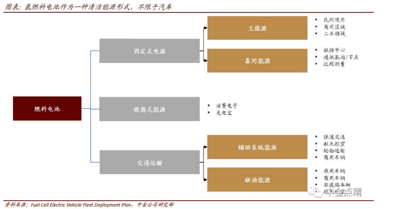 燃料電池產(chǎn)業(yè)鏈尚處在商業(yè)化早期,中性看待燃料電池板塊。但從資金門檻和技術(shù)門檻角度,未來有較高的市場份額和利潤空間的企業(yè)存在機(jī)會(huì),細(xì)分板塊推薦順序是燃料電池商用車、加氫站、質(zhì)子交換膜、燃料電池電堆及系統(tǒng)。全產(chǎn)業(yè)鏈可以分為上游的氫能制備、貯存、運(yùn)輸、加注等環(huán)節(jié);中游的燃料電池電堆及系統(tǒng)、相關(guān)零部件等;下游的整車應(yīng)用、工程服務(wù)與營運(yùn)等。產(chǎn)業(yè)鏈中上游制氫、儲氫、加氫站建設(shè)快于中下游,在目前主流的制氫路線中(煤焦化&;氣化制氫、油氣制氫、氯堿制氫和清潔能源棄電制氫)。