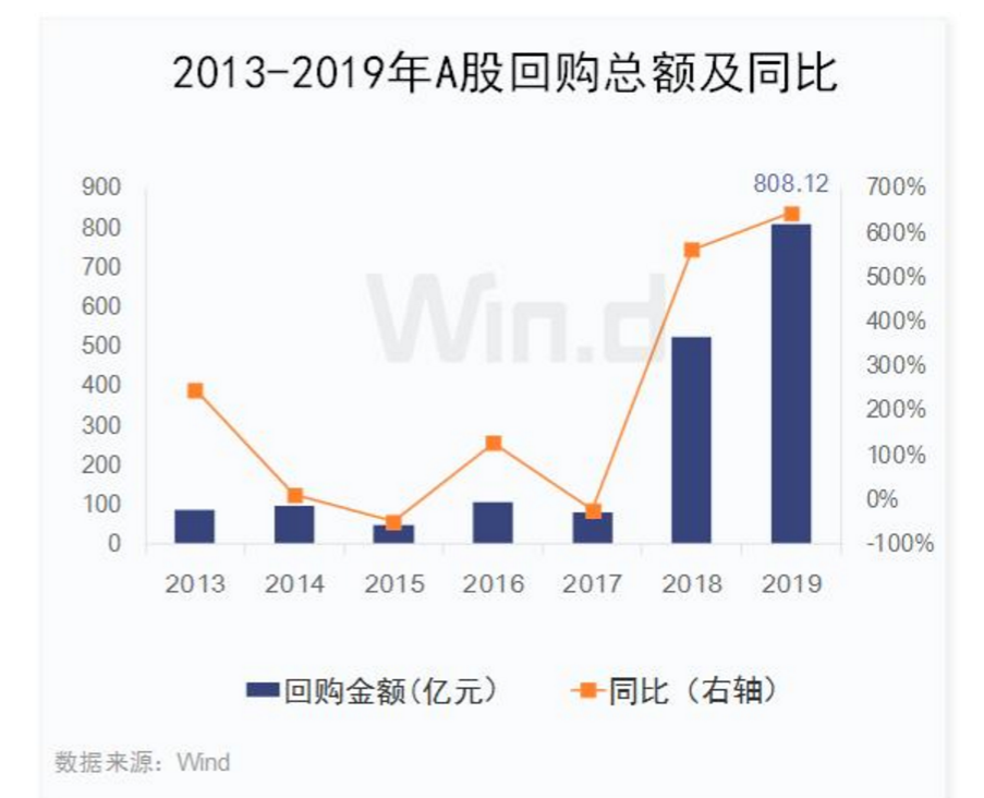 2019年初至今,兩市已有711家公司實(shí)施了回購計(jì)劃,總回購金額遠(yuǎn)超去年全年,達(dá)808.12億元,同比增長(zhǎng)6.43倍,2018年同期回購總規(guī)模為108.76億元。