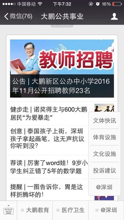 ??? @深圳通過虛擬一個城市級的內(nèi)容平臺,將不同平臺和載體的內(nèi)容連在一起,兼容性強。技術新,@深圳本質(zhì)是手機網(wǎng)站,可嵌入在微信公眾號底部菜單欄中(也可嵌入APP客戶端中),采用了最新H5編碼技術,可左劃右劃更換頻道,也可上劃下劃翻看內(nèi)容,還可以增減和訂制頻道,操作與APP無明顯差別,不用下載安裝,直接將網(wǎng)頁存在桌面即可。選擇多,@深圳包括手機網(wǎng)站和APP客戶端兩個形態(tài),嵌入微信菜單鍵的為手機網(wǎng)站,此外還有單獨安卓版和蘋果版APP可供用戶下載。