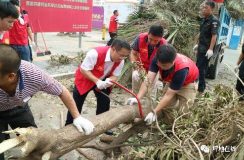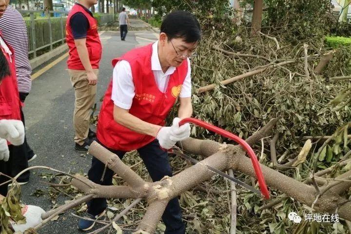 臺(tái)風(fēng)過后,9月17日,坪地街道黨工委書記曾憲旺就向全街道黨員發(fā)出號(hào)召:希望我們坪地的黨員干部要向抗擊臺(tái)風(fēng)時(shí)一樣,在災(zāi)后恢復(fù)的工作中沖在前面,叫響“看我的、跟我來”。3天來,坪地黨員干部保持了戰(zhàn)時(shí)狀態(tài),災(zāi)后第一天就基本恢復(fù)了轄區(qū)供水、供電和主要道路的交通,9月20日的主題黨日活動(dòng)中,清潔主要干道35條,清理路面12公里,砍斷無移植價(jià)值樹木16棵,清理樹枝58車次。街道各社區(qū)市容環(huán)境基本得到恢復(fù)。
