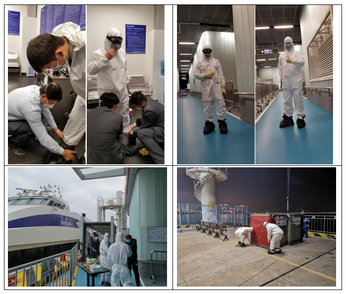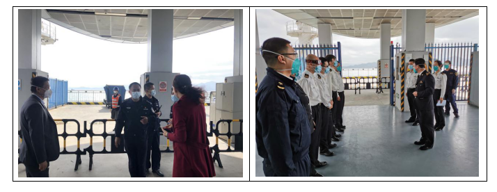 港口各級(jí)干部員工勇于擔(dān)當(dāng)、迎難而上,勠力同心、眾志成城,共同筑牢嚴(yán)防疫情輸入的堅(jiān)強(qiáng)防線,用實(shí)際行動(dòng)詮釋了“牢記使命勇?lián)?dāng)”。蛇口郵輪母港呂如福常務(wù)副總經(jīng)理與港口運(yùn)營(yíng)中心林麗華總經(jīng)理連夜開會(huì)部署至深夜,第二天仍早早趕到現(xiàn)場(chǎng)與聯(lián)檢單位共同查勘旅客動(dòng)線;賴乙??偙O(jiān)接到航班通知后,放棄值班休息第一時(shí)間趕到現(xiàn)場(chǎng)布置各項(xiàng)保障任務(wù),并親自為一線員工穿戴防護(hù)用品;港口一線員工面對(duì)夜間加開航班旅客人數(shù)多且有發(fā)燒旅客的情況,毫不退縮、沖鋒在前,順利完成保障任務(wù),一直到深夜客船和旅客動(dòng)線消毒清場(chǎng)完畢才下班。