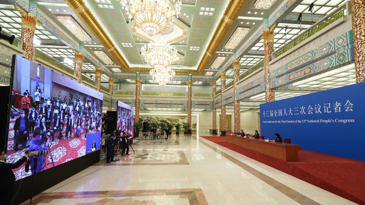 2020年5月28日(星期四)下午十三屆全國人大三次會議閉幕后,國務(wù)院總理李克強(qiáng)在人民大會堂三樓金色大廳出席記者會并回答中外記者提問。為有效防控疫情,共同維護(hù)公共衛(wèi)生與健康,記者會采用網(wǎng)絡(luò)視頻形式進(jìn)行。新華網(wǎng)、中國政府網(wǎng)進(jìn)行現(xiàn)場直播。 [2020-05-2814:00 ]